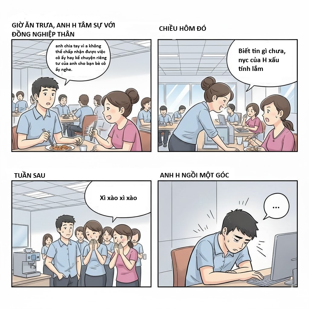 Đôi khi người mà ta kể họ cũng k có ý xấu, nhưng không có gì đảm bảo theo năm tháng câu chuyện mà ta kể cho họ sẽ chỉ dừng ở họ. Tam sao thất bản, chuyện qua càng nhiều người thì càng biến tướng, đôi khi k phải là họ kể sai chuyện, mà chỉ cần kể thiếu 1 chút thôi, bản chất có thể đã khác.